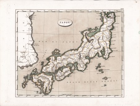 Carta geografica tratta dalla ' Géographie moderne, rédigée sur un nouveau plan, ou Description historique, politique, civile et naturelle des empires, royaumes, Etats et leurs colonies.: renfermant la concordance des principaux points de la géographie ancienne et du moyen âge, avec la géographie modern ' traduzione francese del trattato di Geografia di John Pinkerton, pubblicato a Parigi nel 1804. Le carte geografiche sono elaborate da Jean-Nicolas Buache su quelle disegnate da Aaron Arrowsmith per l’edizione inglese del trattato di Pinkerton. Jean-Nicolas Buache de La Neuville è stato un idrografo e geografo francese attivo tra la fine del XVIII e l'inizio del XIX secolo. Direttore del Dépôt des Cartes de la Marine, fu l'ultimo a fregiarsi del titolo di “primo geografo del re”. Eletto membro dell'Accademia delle Scienze nel 1770, fu incaricato da Luigi XVI di redigere nel 1788 le mappe dei baliati del regno di Francia. J. N. Buache era un ardente sostenitore delle idee cartografiche radicali di suo zio, Phillip Buache, riguardo all'ipotizzata esistenza di un "passaggio a nord-ovest". Come Phillip, Jean Nicholas credeva che la cartografia teorica, cioè l'applicazione delle teorie geografiche, potesse riempire i luoghi vuoti del globo prima che gli esploratori reali vi si recassero. Acquaforte con bellissima coloritura coeva, in ottimo stato di conservazione. Map taken from ' Géographie moderne, rédigée sur un nouveau plan, ou Description historique, politique, civile et naturelle des empires, royaumes, Etats et leurs colonies.: renfermant la concordance des principaux points de la géographie ancienne et du moyen âge, avec la géographie modern ' French translation of John Pinkerton's treatise on Geography, published in Paris in 1804. The maps are elaborated by Jean-Nicolas Buache on those drawn by Aaron Arrowsmith for the English edition of Pinkerton's treatise. Jean-Nicolas Buache de La Neuville was a French hydrographer and geographer active in the late 18th and early 19th centuries. Director of the Dépôt des Cartes de la Marine, he was the last to hold the title "first geographer to the king." Elected a member of the Academy of Sciences in 1770, he was commissioned by Louis XVI to draw up maps of the bailiwicks of the kingdom of France in 1788. J. N. Buache was an ardent supporter of the radical cartographic ideas of his uncle, Phillip Buache, regarding the hypothesized existence of a "northwest passage." Like Phillip, Jean Nicholas believed that theoretical cartography, that is, the application of geographical theories, could fill in the empty places on the globe before actual explorers went there. Etching with beautiful contemporary coloring, in excellent condition. Cfr.