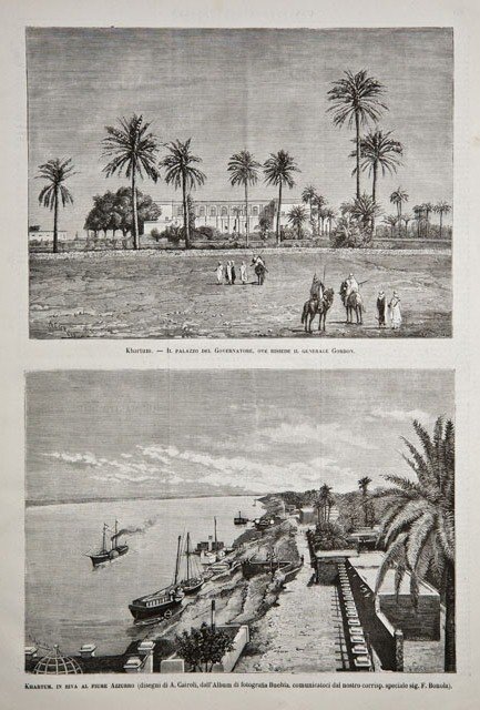Khartum / Il palazzo del Governatore, ove risiede il generale Gordon / Khartum, in riva al fiume Azzurro