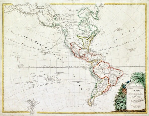 L'Amèrique divisée dans les principaux Etats avec les Nouvelles Decouvértes du Capit. Cook depuis le detroit de Behrings jousqu' au Nord dans l'Ocean pacificque et du Capit. Jean Meares dans les années 1788 et 1789.