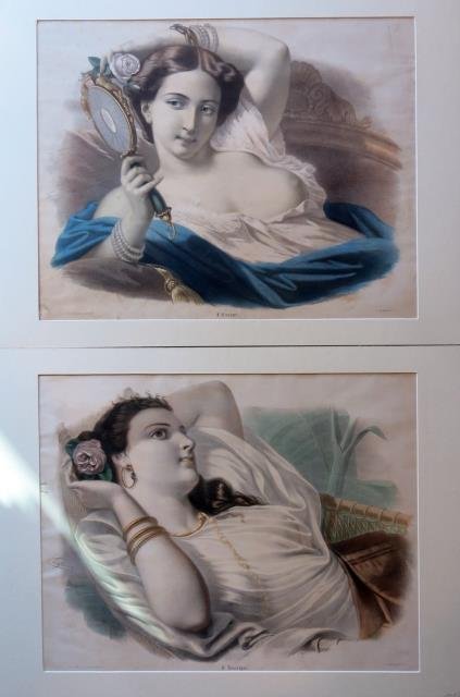 Paris, L. Turgis, 1850 circa. Numero quattro litografie in colore d'epoca, cm 53 x 66 (il foglio). In basso al centro "Lithographiées par Lafosse d'après Lazerges", la firma di Lafosse nella parte figurata alla metà del margine laterale sinistro. Non facile a reperirsi la serie completa delle quattro. L'Asia e l'Europa presentano abrasioni del foglio nella parte superiore, lievissime fioriture d'insieme, tenue e bella la coloritura, molto decorative.
