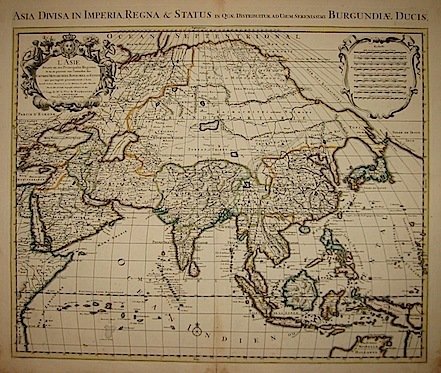 Incisione originale su rame (cm. 58,5x50 più ampi margini) pubblicata da I. Covens e C. Mortier. Coloritura coeva della cornice e dei confini all’acquarello. Ottimo esemplare.