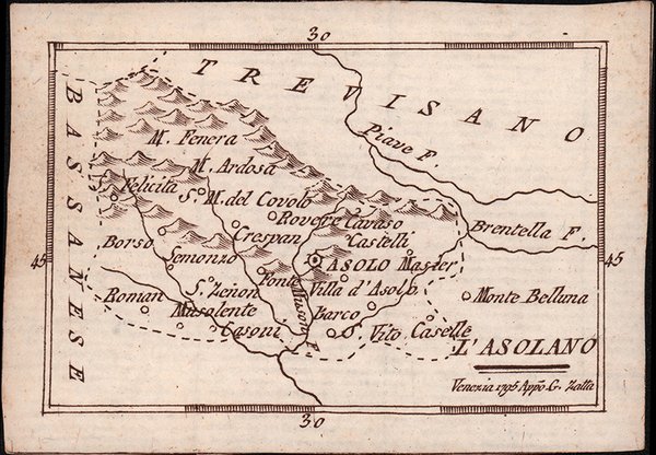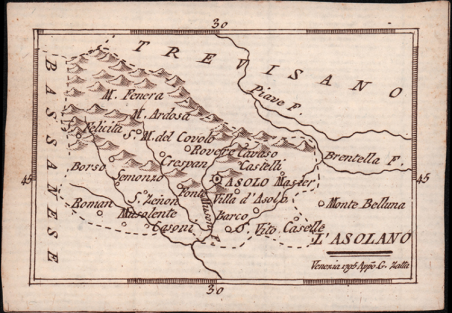RARITA’ CARTOGRAFICA Sconosciuta piccola carta geografica con imprint di Giacomo Zatta e data 1795, appartenente a un non documentato atlante in miniatura dal titolo “Atlante tascabile per le dame”, suddiviso in tre tomi, stampati “IN VENETIA Presso G. Zatta”, senza data ma circa 1795. Si tratta di carte da visita – con un apposito spazio bianco dove apporre il proprio nome – dove compare l’imprint o di Pietro Zancon (accompagnato dalla data 1794) o di Giacomo Zatta (con data 1794 o 1795), che, come si legge sul frontespizio, risulta l’editore dell’opera. Possiamo ipotizzare che la serie, iniziata da Zancon fu poi terminata dallo Zatta. Sulla carta dell’Italia – presumibilmente la prima tavola dell’opera – compare stampato il nome di Chiara Minelli Rota, nobildonna veneziana che sposò Antonio Rota nel 1794; tutte le restanti 65 carte recano lo spazio bianco privo di nome. In precedenza, le carte erano note solo attraverso una serie, priva di imprint editoriale, venduta 21 anni fa (1999) dall’Antiquariaat Haas di Bedburg Hau; parlando con Stephan Haas, la serie, priva di titolo e dati editoriali si componeva di 70 mappe. Le carte furono vendute separatamente sotto il nome di G. Bonatti, firma dell’incisore che si trova nella carta della Francia. In seguito, le tavole furono attribuite a Pietro Zaricen da Geoffrey King (cfr. Miniature Antique Maps, p. 181). Il nome dello Zaricen viene dedotto dalla carta della contea del Roussillon, che reca l’iscrizione “Venezia 1794 App.o P. Zancon”, letto erroneamente come Zaricen. Lajos Szantai include la carta dell’Ungheria nella sua cartobibliografia, traducendo il nome dell’autore in Zancen (cfr. Atlas Hungaricus 1528-1850). Sempre King, che non menziona nessuna carta firmata da Zatta, sostiene che “About the turn of the century a signed card of the first edition, with a map of the province of Roussillon in the south of France, was seen at an Ephemera Society Fair in London”. Questo esemplare sembrerebbe oggi quello conservato alla Yale University Library [1978 351], che lo descrive composto da 70 carte geografiche. Non sappiamo se sia il numero totale delle mappe, e l’assenza di un indice o dell’elenco non consente di stabilire l’esatto numero delle carte che lo compongono. http://hdl.handle.net/10079/bibid/3611852Confrontando le carte erroneamente attribuite allo Zaricen ci si accorge che la lastra è abrasa in corrispondenza della firma di Zancon o Zatta. Molto scarse sono le notizie sulle carte che possiamo ora definire “ex Zaricen”. Jason Hubbard nella sua bibliografia recente sulle carte del Giappone raffigura la carta priva dell’imprint “App.o G. Zatta” attribuendola - sulla base delle informazioni bibliografiche finora note – a Giuseppe Bonatti e Pietro Zaricen: “This is one of the 70-odd geographical cards, printed on one side only, acquired by the Haas brothers in 1999. The cards cover countries around the world and include detailed map of Italian provinces. The card with the map of France carries the inscription: G. Bonatti fece; and it is presumed that Bonatti engraved all of them although this is questioned by King” (cfr. J. Hubbard, Japoniae Insulae, n. 124). Il nostro esemplare della carta della Francia, che reca l’imprint “Venezia 1794, App.o P. Zancon” reca in basso a destra la firma di Bonatti sopra menzionata. Dunque, l’unica differenza tra questa serie di sconosciute carte sembra essere la presenza degli imprint editoriali di Zancon e Zatta, accompagnati dalla data 1794 o 1795. Giuseppe Bonatti è menzionato da V. Valerio nella qualità di incisore cresciuto alla scuola Remondini di Bassano, autore di alcune carte per l’atlante di Pazzini Carli (Siena, 1788-1800) e per l’Atlante Geografico di Carlo Antonio Barbiellini (Milano, 1807). Dal 1809 in poi lavorò come incisore per il Deposito della Guerra di Milano (cfr. V. Valerio, Cartografi Veneti, p. 153). Pietro Zancon era, assieme . A GREAT RARITY Unknown small map with imprint by Giacomo Zatta and date 1795, belonging to an undocumented miniature atlas entitled “Atlante tascabile per le dame” (Pocket Atlas for ladies), divided into three volumes, printed "IN VENETIA Presso G. Zatta", undated but about 1795. A rare set of visiting cards published in Italy features pretty little maps of all parts of the world - with a special white space where to put your name - where the imprint appears or of Pietro Zancon (accompanied by the date 1794) or Giacomo Zatta (with the date 1794 or 1795), who, as can be read on the title page, is the publisher of the whole Atlas. We can speculate that the series, started by Zancon was later terminated by Zatta. On the map of Italy is printed - presumably the first map of the work - the name of Chiara Minelli Rota, Venetian noblewoman who married Antonio Rota in 1794; all remaining 65 maps bear the blank space without names. Previously, the maps were known only through a series, without editorial imprint, sold 21 years ago (1999) by the Antiquariaat Haas of Bedburg Hau; speaking with Stephan Haas, the series, without title and printing details, consisted of 70 maps. The maps were sold separately under the name of G. Bonatti, the engraver's signature found on the map of France. Later, the plates were attributed to Pietro Zaricen by Geoffrey King (see Miniature Antique Maps, p. 181). The name of Zaricen is derived from the Roussillon county map, which bears the inscription "Venice 1794 App.o P. Zancon", incorrectly read as Zaricen. Lajos Szantai includes the map of Hungary in his cartobibliography, translating the author's name into Zancen (see Atlas Hungaricus 1528-1850). Always King, who does not mention any map signed by Zatta, said: "About the turn of the century a signed card of the first edition, with a map of the province of Roussillon in the south of France, was seen at an Ephemera Society Fair in London ". This copy would seem to be the one preserved in the Yale 