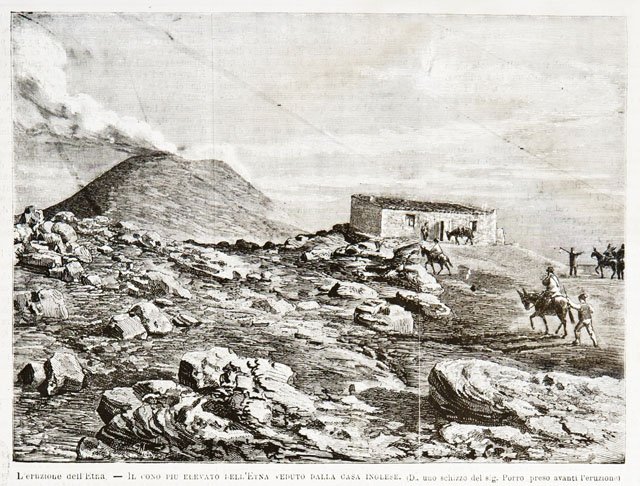 L’eruzione dell’Etna.- Il cono più elevato dell’Etna veduto dalla casa inglese