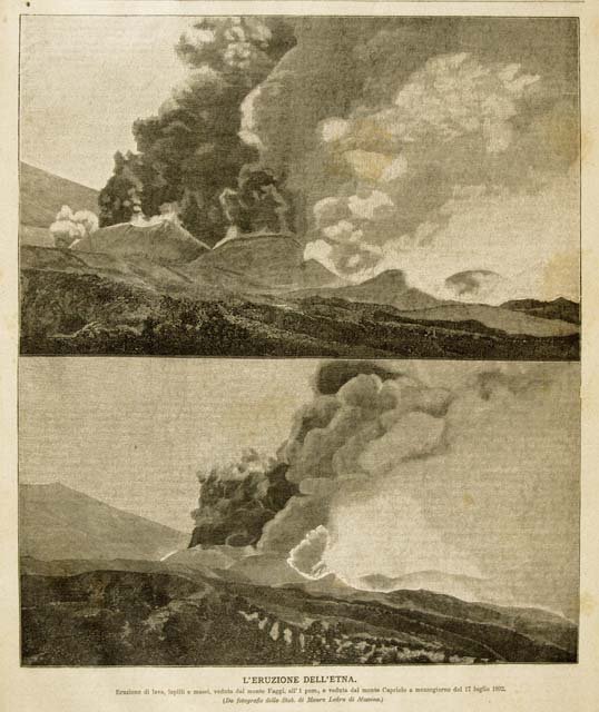 Vedute di due diversi momenti dell'eruzione, il giorno 17 luglio 1892. Testo al verso