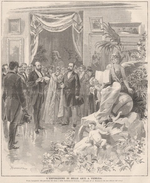 Festa inaugurale alla presenza di Tommaso di Savoia, secondo duca di Genova e della consorte Isabella di Baviera. Testo al retro