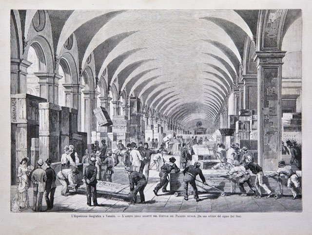 L'Esposizione Geografica a Venezia / L'arrivo degli oggetti nel Cortile del Palazzo ducale