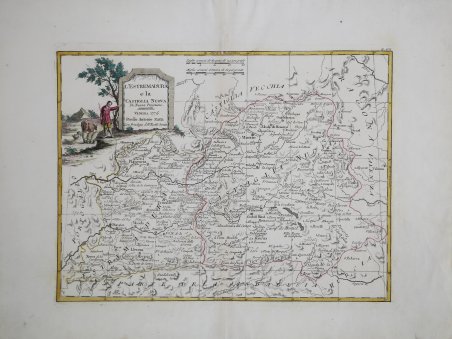 Carta geografica tratta dall’Atlante novissimo, illustrato ed accresciuto sulle osservazioni e scoperte fatte dai più celebri e più recenti geografi. Stampato in quattro volumi da Antonio Zatta tra il 1779 ed il 1785. Atlante fra i più belli e completi mai pubblicati in Italia nel XVIII secolo, l'opera più famosa dello Zatta. L’Atlante Novissimo, come si specifica anche nel titolo, è “accresciuto sulle osservazioni scoperte fatte dai più celebri e più recenti geografi”. Tra le novità più significative vi è la comparsa delle nuove isole scoperte nell'Oceano Pacifico da James Cook e la prima carta italiana della Nuova Zelanda. Le illustrazioni furono ' ideate e disegnate dai suoi collaboratori Giovanni Marco Pitteri, Anton Friedrich Busching, Pietro Antonio Novelli ed incise da Giuliano Zuliani. Il primo tomo dell’atlante è introdotto da un breve saggio di geografia generale dove l’autore definisce in modo sintetico e preciso gli elementi che compongono i reticoli eclittico ed equatoriale usati nelle tavole. Interessante la sezione dove si sofferma ' a descrivere il fenomeno della precessione degli equinozi e quello della variazione ciclica dell'obliquità dell'eclittica. Acquaforte, stampata su carta vergata coeva, coloritura coeva dei contorni, in buone condizioni. Map from the Atlante novissimo, illustrato ed accresciuto sulle osservazioni e scoperte fatte dai più celebri e più recenti geografi. Printed in four volumes by Antonio Zatta between 1779 and 1785. ' Atlas among the most beautiful and complete ever published in Italy in the eighteenth century, the most famous work of Zatta. The Atlante Novissimo, as also specified in the title, is “increased on the observations made by the most famous and most recent geographers”. Among the most significant innovations there is the appearance of the new islands discovered in the Pacific Ocean by James Cook and the first Italian map of New Zealand. The illustrations were designed and drawn by his collaborators Giovanni Marco Pitteri, Anton Friedrich Busching, Pietro Antonio Novelli and engraved by Giuliano Zuliani. The first volume of the atlas is introduced by a brief essay of general geography where the author defines in a concise and precise way the elements that make up the ecliptic and equatorial grids used in the tables. Interesting is the section where he pauses to describe the phenomenon of precession of the equinoxes and the cyclical variation of the obliquity of the ecliptic. Etching, printed on contemporary laid paper, contemporary outline coloring, in good condition. Cfr.
