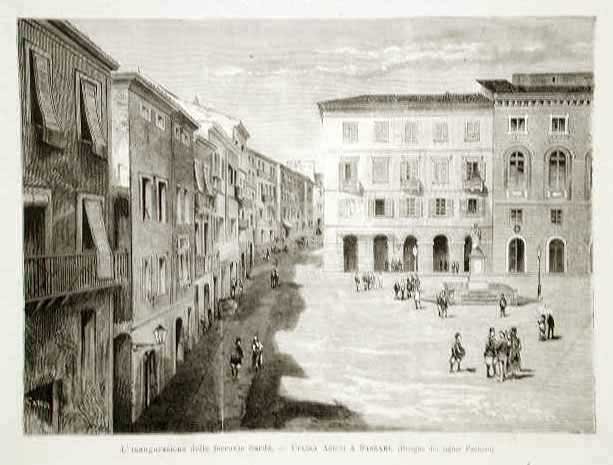 L'inaugurazione delle ferrovie sarde - Piazza Azuni a Sassari | Stampe | Paolocci D. dis. - Canedi inc.
