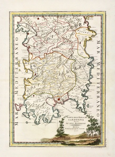 L'isola di Corsica divisa nelle sue provincie o giurisdizioni.Insieme a: Parte dell'isola di Sardegna divisa nei suoi distretti.