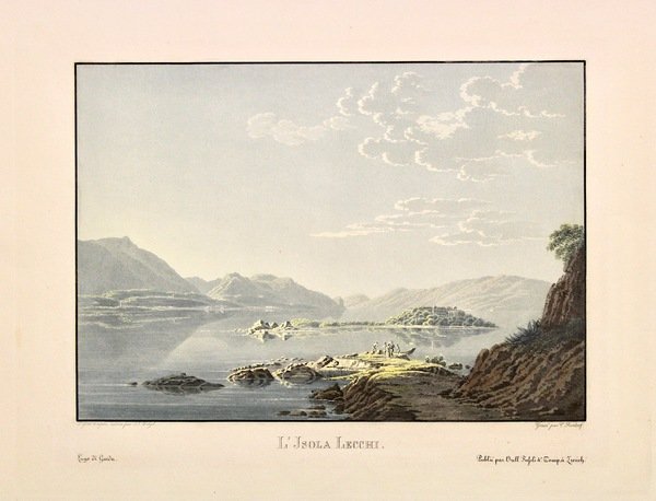 Acquatinta incisa in rame da C. Rordorf su disegno di Wetzel, dipinta d'epoca, mm 194x275 (parte incisa). Suggestiva veduta presa da sud verso Riva; tratta dalla celebre opera " Voyage pittoresque au Lac de Garde ou Benaco " pubblicata da Orel Fussli, senz'altro la più ricercata ed elegante serie pubblicata sul lago di Garda. Ottime condizioni. Sinistri-Spini " Il Garda nelle stampe ", 83. <BR>