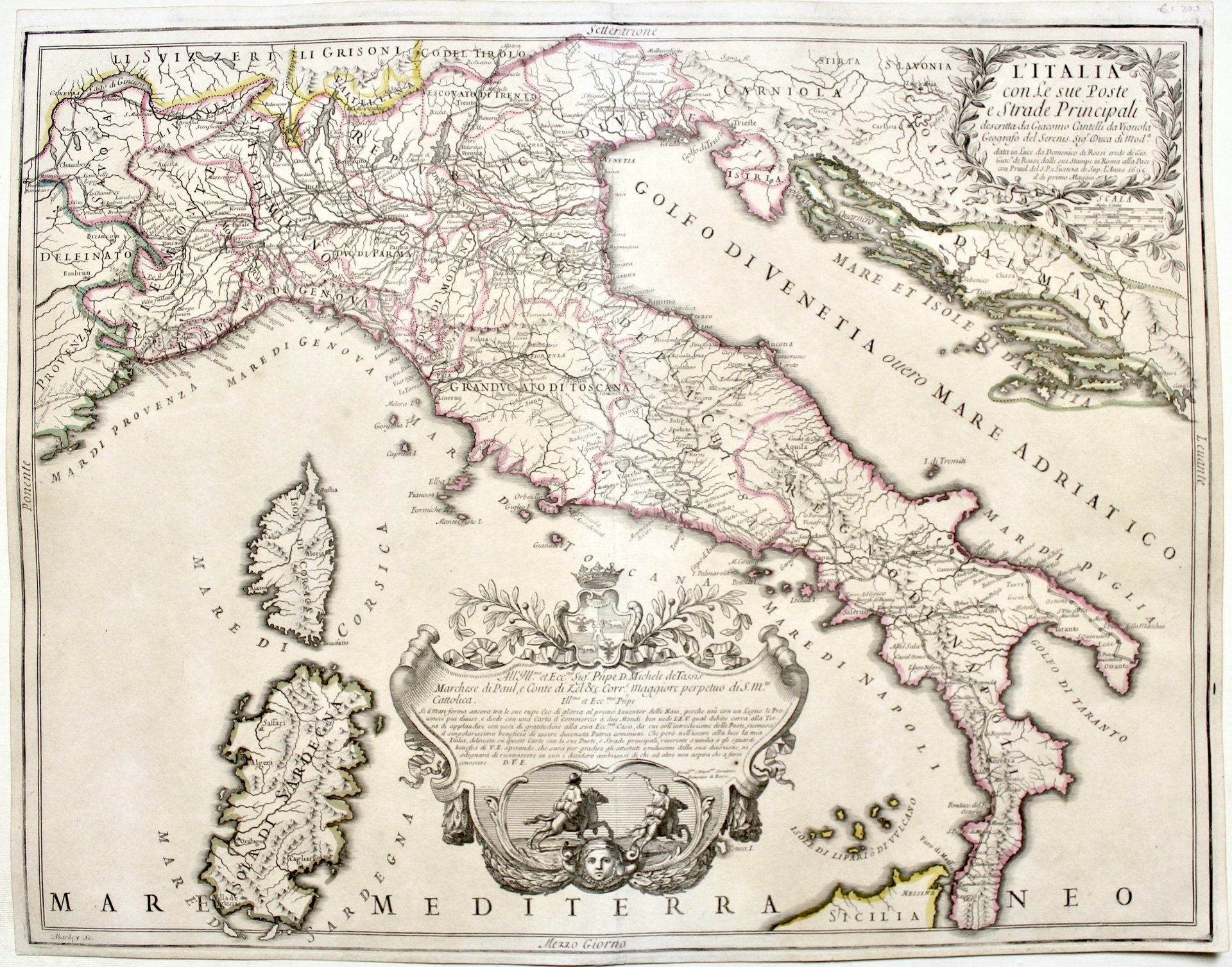 L’Italia con le sue Poste e Strade Principali descritta da Giacomo Cantelli da Vignola…data in luce da Domenico De Rossi<BR><BR>