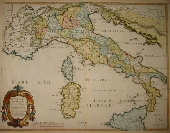 Carta geografica originale (cm. 53,5x41 più margini bianchi). Bella coloritura all’acquarello. Ottimo esemplare. Borri, 103.