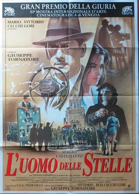 Manifesto in offset, cm 100 x 140. Un film del 1995 di Giuseppe Tornatore, produzione Mario e Vittorio Cecchi Gori, con Sergio Castellitto, Tiziana Lodato e Leonardo Trieste. Buone condizioni.