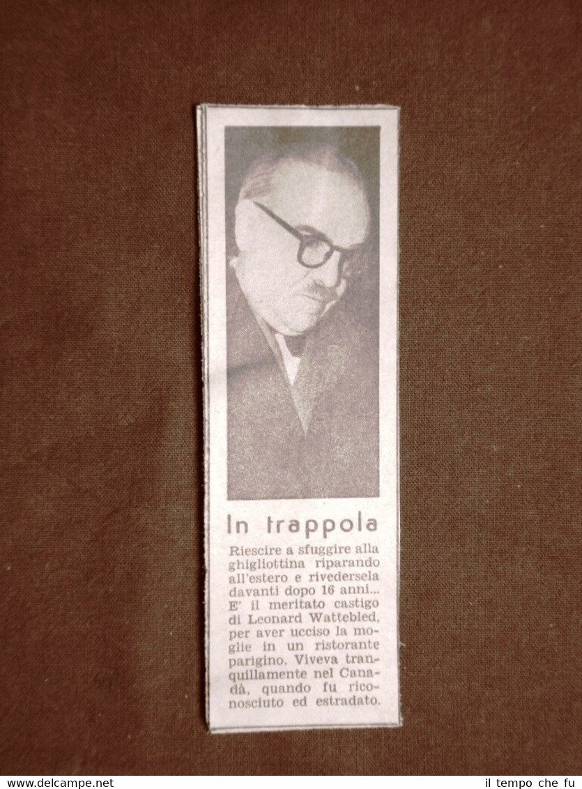 Rara stampa Estratta da Rivista d'epoca del 1953. .stampa che ha quindi oltre 65 anni! L'uxoricida Leonard Wattebled nel 1953 Estradato dal Canada dopo 16 anni II1953-002 Dimensioni Cm 4,00 x 12,00 Qualora vogliate delle scansioni migliori contattateci, soddisferemo ogni vostra richiesta. Paypal Carta di credito Bonifico bancario Accuratamente adagiate su un cartoncino e protette da pellicola trasparente rigida, il tutto viene inserito dentro plico di adeguate dimensioni per proteggerne l'integrità.