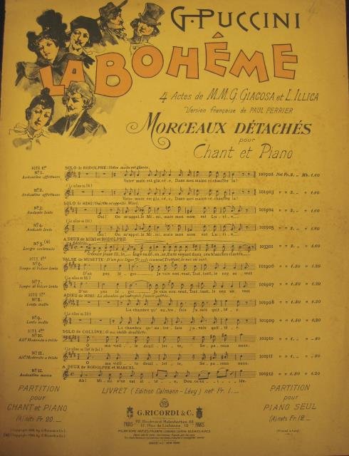 LA BOHÈME" DI GIACOMO PUCCINI (1896). Spartito originale con coperta illustrata in tricromia.