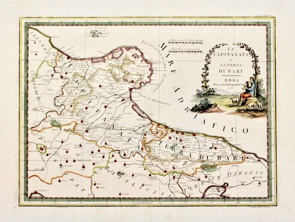 Incisione in rame, mm 350x480, dipinta a mano. Non comune carta tratta da "Nuovo Atlante Geografico Universale delineato sulle ultime osservazioni", edito a Roma dal 1792 fino al 1801. La Calcografia Camerale gli commissionò l'opera per sostituire il "Mercurio Geografico". Giovanni Maria Cassini (1745-1824), allievo di Piranesi, fu religioso, geografo, costruttore di globi e cartografo. Ottimo esemplare