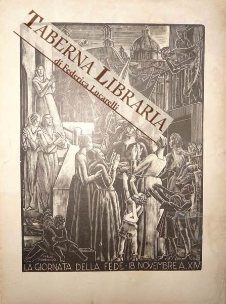 Xilografia in nero tratta dalla rivista "L'Eroica", n. 281-283 (genn. febb. marzo 1942). Dimensioni relative alla sola parte incisa mm. 255x190 su foglio di mm.325x240. Ombreggiature non gravi ai margini bianchi