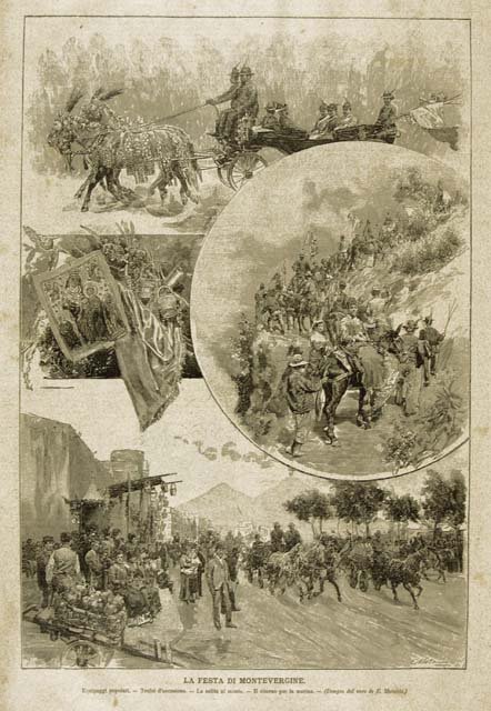 Raffigurazione del pellegrinaggio napoletano al santuario di Montevergine. Testo al verso