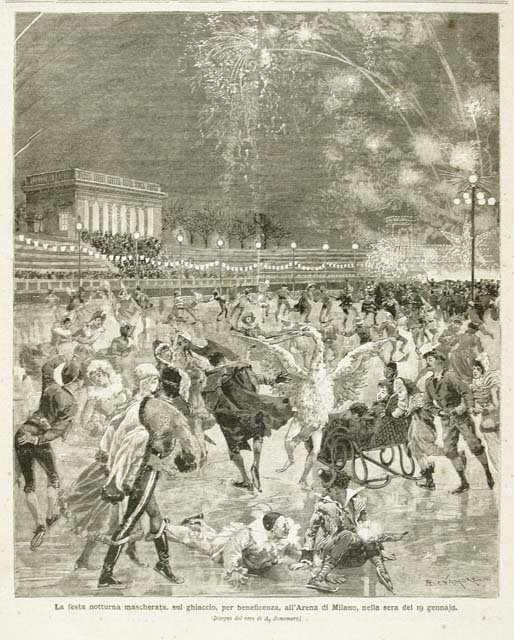 La festa notturna mascherata, . all'Arena di Milano, nella sera del 19 gennaio