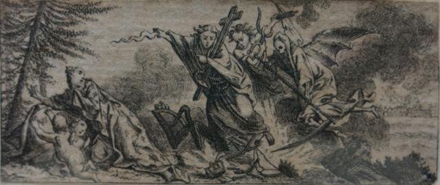 Edimburgo, 1803. Tratta dal "A Collection of Etchings after the most Eminent Master of the Dutch and Flemish Schools". Particulary Rembrandt, Ostade, Cornelius Bega and Van Vliet Accompanied with Sundry Miscellaneous Pieces anda Few Original Designs by Dav.d Deuchar" (Seal Engraver Edinburgh, Dec.22, 1803). Incisione in rame all'acquaforte e bulino, b/n, cm 3,3 x 7,5 (il foglio). Ottima impressione, ottima conservazione.
