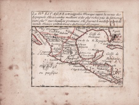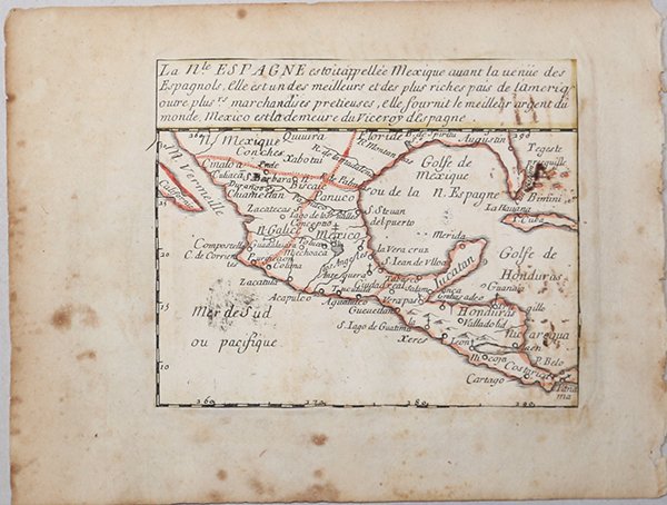 Acquaforte, 1656 circa, con coloritura coeva dei contorni, in buone condizioni.Esemplare del secondo stato di due, con l’imprint di Jacques Lagniet e la data del 1661.La mappa proviene dal rarissimo foglio intitolato “L’Amerique par P. Du Val Geographe du Roy”, dal quale è stato ritagliato all’epoca - come anche certificato dalle antiche iscrizioni a inchiostro su alcune delle mappe - venendo applicato su un supporto di carta contemporanea, a formare un piccolo atlante in-sedicesimo oblungo.Secondo Philip Burden, lo scopo di questa rara curiosità cartografica di Pierre Duval non è noto. Fa parte di un insieme di quattro tavole raffiguranti i continenti. Può essere datato, per motivi cartografici, all’incirca nel 1656. L’unico esemplare del primo stato del foglio dell’America noto all’autore proviene dalla John Evelyn Library. Il secondo stato del foglio reca l’imprint aggiuntivo di Jacques Lagniet e la data del 1661 (cfr. Burden, The Mapping of North America, pagg. 417-418, n. 322). Burden elenca solo 2 esemplari del secondo stato, in una collezione americana privata (The Glen McLaughlin Map Collection of California as Island, oggi conservata presso la Stanford University) e presso la Bibliotheque National de France (che possiede l’insieme dei quattro continenti).La raccolta di mappe americane di Pierre Duval è sia rara che insolita. Il foglio contiene 18 singole mappe di varie parti del Nord e del Sud America. La mappa generale in alto a sinistra è disegnata dalla mappa di formato in-folio dello stesso Duval (1655), che mostra l’isola della California, senza Grandi Laghi, e una grande massa denominata “Terre de Iesso” che si estende tra l’Asia e il Nord America.Ce ne sono otto dedicati al Nord America; quattro dei quali sono basati sulle mappe di Sanson del 1656 - Le Canada, La Nle. Espagne, Le N. Mexique e La Floride. Il confronto di Burden con le mappe di Sanson lo porta a credere che la mappa di Duval potrebbe aver preceduto la carta di Guadalajara di Sanson o forse essere stata pubblicata contemporaneamente, rendendo questa mappa del New Mexico effettivamente la prima dedicata all’isola della California. Le quattro piccole mappe lungo il centro della fila inferiore: La Virginie, La Nle. Holande, La Nle. Suede e Le Nouveau Danemarq sono estremamente interessanti perché ci sono poche mappe contemporanee dedicate a queste regioni. La mappa di New Holland mostra la parte inferiore del R. del Nort (fiume Hudson). La mappa della Nuova Svezia è la prima mappa a concentrarsi sul fiume Delaware. La mappa della Nuova Danimarca raffigura la regione artica rivendicata dalla Danimarca a nord-ovest della baia di Hudson, qui etichettata Mer Christiane.Le altre mappe sul foglio includono due dedicate alle Indie occidentali e sette mappe regionali del Sud America: La Guiane, La Castille d'Or, Le Perou, Le Bresil, Le Chili, Le Paraguay e La Magellanique. Etching, circa 1656, with contemporary outline colour, good condition.Example of the second state of two, with the imprint of Jacques Lagniet and the date 1661.The map comes from the very rare sheet entitled “L’Amerique par P. Du Val Geographe du Roy”, from which it was cut at the time and laid down on contemporary laid paper support, to form a small atlas, as certified by the ancient ink inscriptions on some of the maps.According with Philip Burden “The purpose of this rare curiosity by Pierre Duval is not known. It forms part of a set of the four known continents. It can be dated to apporximately 1656 […] The only example of the first state known to the author come from the John Evelyn Library in the early 1980s. The second state bears the additional imprint of Jacques Lagniet and the date 1661”. (cf. Burden, The Mapping of North America, pp. 417-418, n. 322). Burden list only 2 example of the second state, in a private American collection (The Glen McLaughlin Map Collection of California as an Island, at Stanford University) and at the Bibliotheque National de France (that own all the set of four continents).Pierre Duval's compilation of American maps is both rare and unusual. The sheet contains 18 individual maps of various parts of North and South America. The general map at top left is drawn from Duval's own folio map of 1655, which features the island of California, no Great Lakes, and a large Terre de Iesso stretching between Asia and North America.There are eight devoted to North America; four of which are based on Sanson's maps of 1656 - Le Canada, La Nle. Espagne, Le N. Mexique, and La Floride. Burden's comparison with Sanson's maps leads him to believe that Duval's map may have preceded Sanson's Audience de Guadalajara or possibly were published concurrently, making this map of New Mexico actually the first devoted to the island of California. Interestingly, on the small map the island is presented on the Foxe model, while on the general map it is shown on the Briggs format. The four small maps along the center of the bottom row - La Virginie, La Nle. Holande, La Nle. Suede, and Le Nouveau Danemarq are extremely interesting because there are few contemporary maps devoted to these regions. The map of New Holland features the lower part of the R. del Nort (Hudson River). The map of New Sweden is the first map to focus on the Delaware River. The map of New Denmark depicts the Arctic region claimed by Denmark to the northwest of Hudson Bay, here labeled Mer Christiane.The other maps on the sheet include two devoted to the West Indies, and seven regional maps of South America - La Guiane, La Castille d'Or, Le Perou, Le Bresil, Le Chili, Le Paraguay, and La Magellanique. Cfr. Burden, The Mapping of America, n. 322, II/II; Pastoureau (1984) p. 136; cf. Betz, The Mapping of Africa, pp. 294, 295, n. 85; cf. J. Hubbard, Japoniae Insulae. The Mapping of Japan, pp. 199-201, n. 28.