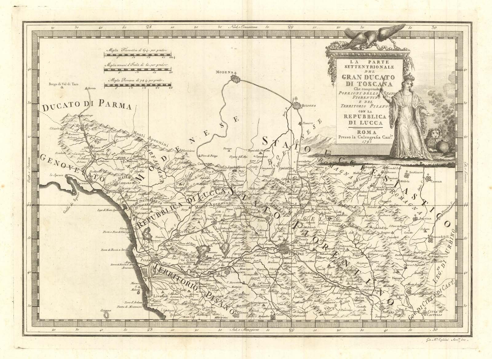 La parte Settentrionale del Ducato di Toscana Che comprende Porzioni dello Stato Fiorentino e del Territorio Pisano con la repubblica di Lucca