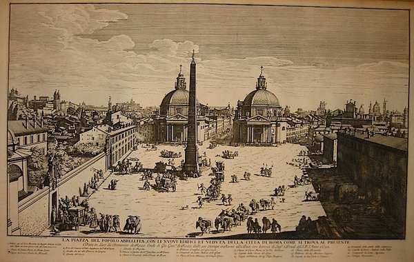La piazza del Popolo abbellita con li nuovi edifici et veduta della città di Roma come si trova al presente
