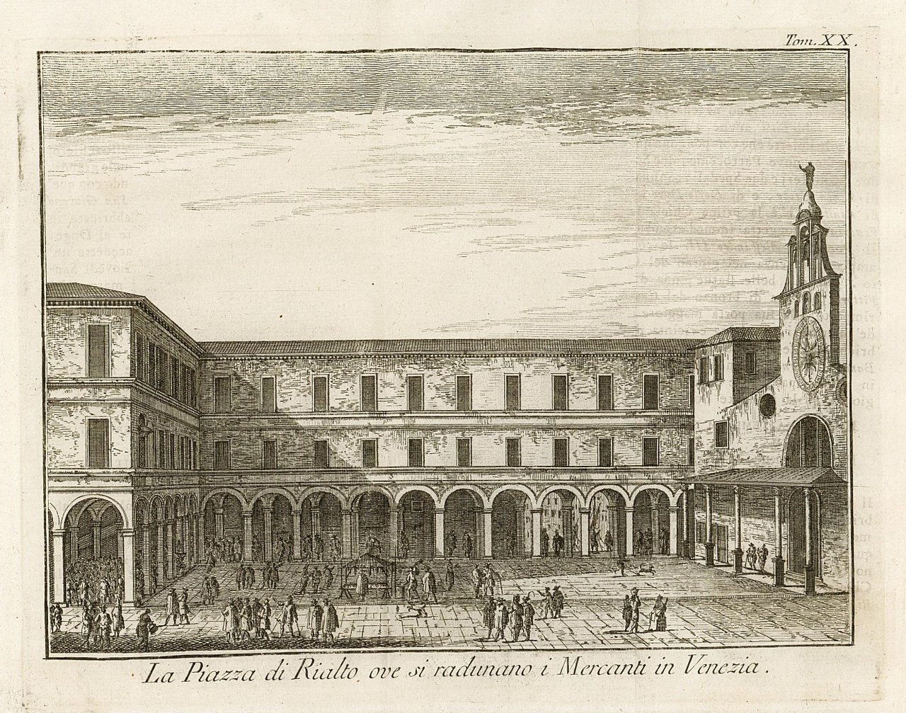 La Piazza di Rialto ove si radunano i Mercanti in Venezia.