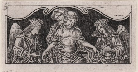 Copia di un niello della collezione Durazzo, di cui una impressione originale è nella collezione del Cabinet Rothschild al Louvre. La composizione corrisponde, al contrario, ad un dipinto di Filippino Lippi del 1490-95 circa, probabilmente il pannello centrale di una predella, nella collezione Kress al National of Art, Washington, così come al cartone di Filippino per lo stesso, punzonato per il trasferimento, nel Allen Memoril Art Museum, Oberlin. Anche se Blum ha attribuito questa stampa al nord Italia, deve essere fiorentina e databile alla fine del XV secolo. I nielli della collezione Durazzo vennero fatti riprodurre in incisioni dal proprietario, tra fine XVIII e inizio XIX secolo, a Venezia - come specificato anche dal Malaspina nel suo catalogo del 1824 - costituendo una serie che venne diffusa e collezionata dagli amatori. Bartsch descrive queste copie nel suo volume edito nel 1811, data che quindi costituisce il terminus ante quem per l'esecuzione. Copy, on the same verso, of a niello print formerly kept in the Durazzo collection (n. 2903), now in Paris, Louvre, Cabinet Rothschild collection. The composition corresponds, in reverse, to a painting by Filippino Lippi of ca. 1490-95, probably the middle panel of a predella, in the Kress Collection at the National of Art, Washington, as well as to Filippino’s cartoon for the same, pricked for transfer, in the Allen Memoril Art Museum, Oberlin. Although Blum has attributed this print to northern Italy, it must be Florentine and datable to the end of the fifteenth century. The nielli of the Durazzo collection were reproduced in engravings by the owner himself, between the end of the 18th and the beginning of the 19th century, in Venice - as also specified by Malaspina in his catalog of 1824 - constituting a series that was circulated and collected by amateurs. Bartsch describes these copies in his volume published in 1811, a date that therefore constitutes the terminus ante quem for the execution. ' Cfr. TIB 2401.005; Duchesne, pp. 172-173; Zanetti, p. 104.