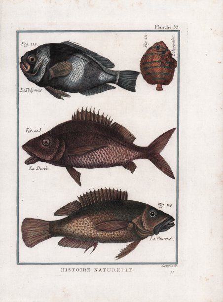 Tavola tratta da ' Dictionnaire de toutes les especes de pêches. ' - A Padoue, 1797, parte della ' Encyclopédie méthodique. - Nouvele édition enrichie de remarques dédiée à la sérénissime Republique de Venise. - A Padoue, 1784-1817, pubblicata dalla Tipografia del Seminario. Le tavole sono curate e incise da Pietro Scattaglia Pietro Scattaglia fu incisore, venditore e miniatore di stampe, attivo a Venezia (Bellini, 1995) con indirizzo ' incisori e miniatori sul Ponte di Rialto. In seguito entrò in società con Innocente Alessandri, di cui era sposato con la sorella, con il nome di "Calcografia Magna". Acquistò le tavole e ripubblicò la Raccolta di Pietro Monaco nel 1772. Incisione in rame, finemente colorata a mano, in ottimo stato di conservazione. Bibliografia Rodolfo Gallo, 'L'incisione nel '700 a Venezia e a Bassano', Venice 1941, pp.47-8; Giorgio Marini, in 'Le collezioni di stampe e di libri di Ambrogio Rosmini', Rovereto 1997, pp. 98. Plate taken from ' Dictionnaire de toutes les especes de pêches. ' - In Padoue, 1797, part of the Encyclopédie méthodique. ' - Nouvele édition enrichie de remarques dédiée à la sérénissime Republique de Venise. - In Padoue, 1784-1817, published by the Tipografia del Seminario. The plates are edited and engraved by Pietro Scattaglia Pietro Scattaglia was an engraver, seller and miniaturist of prints, active in Venice (Bellini, 1995) with address ' incisori e miniatori sul Ponte di Rialto. He later entered into partnership with Innocente Alessandri, whose sister he was married to, under the name "Calcografia Magna". ' Acquired plates and re-issued Pietro Monaco's Raccolta in 1772. Copperplate engraving, finely hand-colored, in excellent condition. Bibliografia Rodolfo Gallo, 'L'incisione nel '700 a Venezia e a Bassano', Venice 1941, pp.47-8; Giorgio Marini, in 'Le collezioni di stampe e di libri di Ambrogio Rosmini', Rovereto 1997, pp. 98. Cfr.