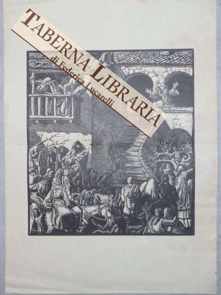 Xilografia originale in nero tratta dalla rivista "L'Eroica", fasc. n.158 (ottobre 1931). Dimensioni relative alla sola parte incisa mm.455x315 su foglio di mm.325x245. Ottimo stato.