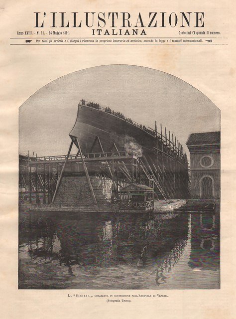 La Sicilia corazzata in costruzione nell’Arsenale di Venezia