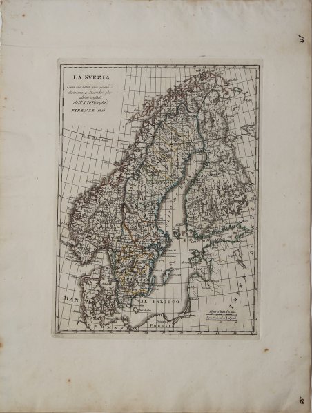 Carta geografica tratta dal raro "Atlante Geografico" dell'abate Bartolomeo Borghi (1750-1821), cartografo, incisore ed editore che tra l'altro pubblicò l'atlante del Pazzini Carli in Siena. Incisione in rame, coloritura coeva dei contorni, in ottimo stato di conservazione. A rare map from "Atlante Geografico" of priest Bartolomeo Borghi. Copperplate with original outline colour, in very good condition. Bartolomeo Borghi(1750-1821) was an italian cartographer, engraver and publisher (editor of Atlante Geografico by Pazzini Carli, Siena 1788/1800). Cfr.