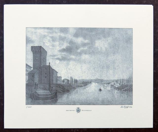 Disegnata da G. Galli e litografata da Ridolfi, ristampa anastatica dell'edizione originale del 1824. Archivio Nannelli. Litografia in b/n, cm 32,5 x 39 (il foglio). L'originale di questa stampa è assai difficile a trovarsi sul mercato. Ottimo stato di conservazione.
