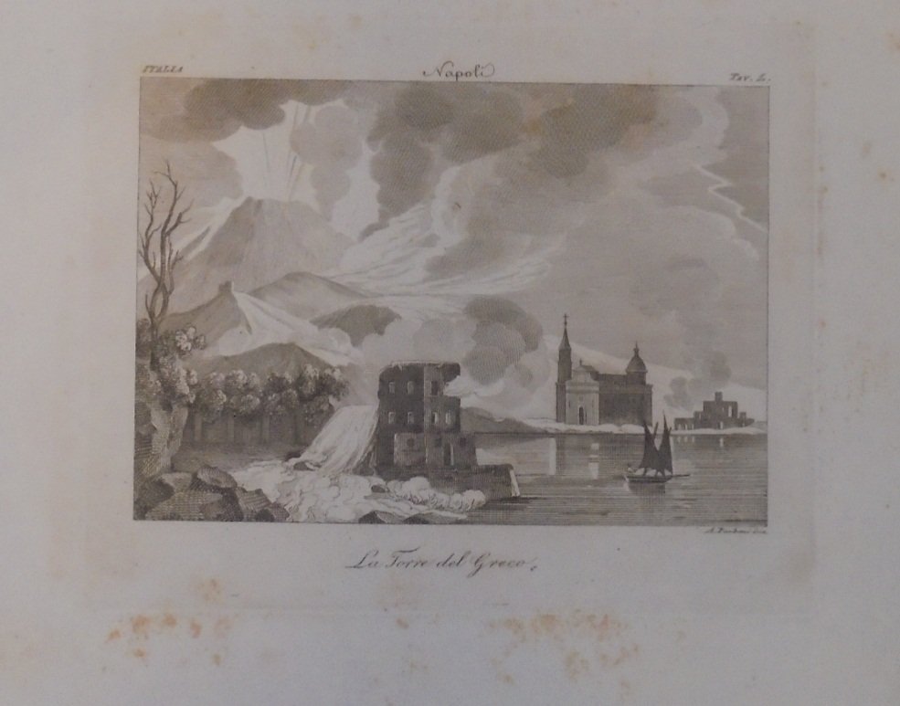Tratta da "Memorie della Storia d`Italia considerata nei suoi Monumenti raccolte e scritte da Giuseppe Checchetelli". Incisione su rame di mm. 125 x 100 circa (=lxh) più ampi margini. Firmata in basso a destra A. Parboni. Fioriture sparse, lievi mende al margine bianco.