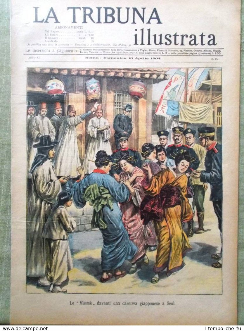 La Tribuna Illustrata Rivista originale del 10 Aprile 1904 Anno 12 - N. 15 Rarità per appassionati e collezionisti Seguono solo alcuni dei fatti descritti, illustrati e fotografati all'interno Illustrato in copertina (segue foto): Le "Musmè" davanti una caserma giapponese a Seul Illustrato nella retro copertina (segue foto): Una fiera dimostrazione a Morlupo contro il vescovo di Sutri Nelle pagine interne: Intorno alla guerra russo-giapponese Tradizioni religiose del mezzogiorno: la Madonna dell'Arco Un combattimento navale di cento anni fà La morte di Francesco Spano Il carosello volante di Sir Hiram Maxim Il terremoto nella Marsica .e tanto altro ancora! Qualora vogliate maggiori delucidazioni contattateci In questo negozio troverai un'intera categoria dedicata alle Tribune Illustrate, sotto il link diretto alla collezione: Riviste disponibili Cliccaci sopra, troverai di certo ciò che cerchi! La Tribuna Illustrata fu un settimanale italiano pubblicato a Roma. Insieme a La Domenica del Corriere e a L'Illustrazione Italiana fu il settimanale illustrato preferito dagli Italiani nel periodo che intercorse dalla fine dell'800 all'avvento della televisione. Fondato nel 1890 come supplemento del quotidiano La Tribuna, il primo numero uscì il 6 gennaio, il formato della rivista era cm 27 x 38, un formato poco più grande del tabloid. La prima ed ultima pagina erano a colori, disegnate da pittori e incisori affermati. Ogni numero conteneva 16 pagine. I principali collaboratori furono: Luigi Capuana, Adolfo De Bosis, Alfredo Fabrizi, Gandolin, Giuseppe Giacosa, Attilio Luzzato, Enrico Panzacchi, Rastignac, Attilio Sarfatti, Armand Silvestre, Ettore Socci, Gaspare Ungarelli, Pio Vanzi, Annie Vivanti. Il Corredo iconografico fu di prim'ordine. I principali pittori, disegnatori ed illustratori furono: Basilio Cascella e i figli Tommaso e Michele, Enrico Lionne, Aleardo Terzi, Augusto Bompiani, Roberto Bompiani, Domenico Bruschi, Modesto Faustini, Rubens Santoro, Rafael Senet, Cesare Tiratelli. Tra i romanzi a puntate che vi uscirono ricordiamo: L'invincibile, di Gabriele D'Annunzio Una giovinezza, di Francois Coppée e Zia Aurelia di André Theuriet, questi ultimi due entrambi illustrati da Emile Bayard. Paypal Carta di credito Bonifico bancario Spedizione con posta prioritaria o raccomandata scelta dall'acquirente nel momento del pagamento