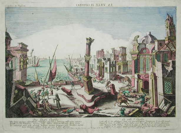 Raffigurazione della città, durante il terribile terremoto. Colorata