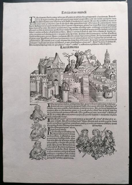 Anton Koberger, Norimberga, 1493. Dal “Liber Chronicarum Nurembergensi”, xilografia, b/n, cm 32,5 x 47,5 circa (il foglio). Molto buono lo stato di conservazione. .