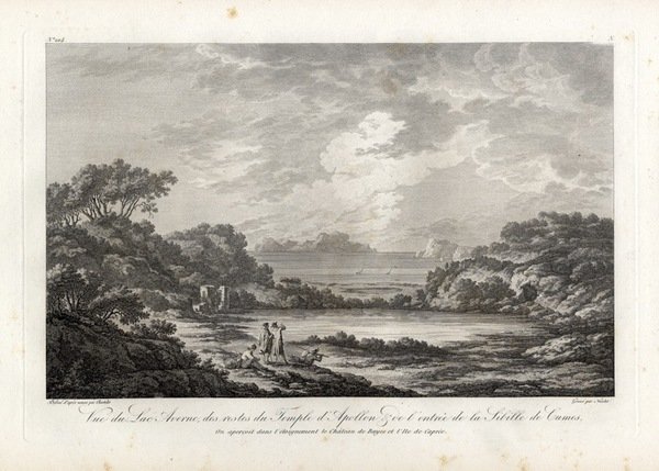 LAGO AVERNO - "Vue du Lac Averne, des restes du Temple d'Apollon "de l'éntrée de la Sibille de Cumes".