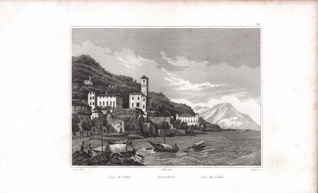 Veduta tratta dal celebre ' L'Italie, la Sicile, les Iles Éoliennes, l'Ile d'Elbe, la Sardaigne, Malte, l'Ile de Calypso etc. D'après les inspirations, les recherches et les travaux de M. M. le Vicomte de Chateaubriand, De Lamartine, Raoul-Rochette, le Comte de Forbin, Piranesi, Mazzara, et de Napoléon, Denon, Saint-Non, Lord Byron, Goethe, Visconti, Cicognara, Lanzi, de Bonstetten, Swinburne, etc. Sites, Monumens, Scènes et Costumes, d'après M.me Haudebourt-Lescot, MM. Horace-Vernet, Granet, Isabey, Ciceri, Mazzara, le Major Light, le Cap. Batty, Cooke, Gell et Gandy, Pinelli, Ferrari, Zucoli, et beaucoup d'autres artistes italiens. Recueillis et publiés par Audot Père, Membre de la Société de Géographie, ' edito a Parigi tra il 1834 ed il 1837 e ristampato a Torino [Giuseppe Pomba e Ca, 1834-1838]. L'opera, in cinque volumi, raccoglie scritti di autori vari, curati da Audot, ed è riccamente illustrata da 324 incisioni su acciaio fuori testo, molte delle quali con accostamento multiplo, per un totale di 473 tavole. Fu notoriamente mastodontico il lavoro cui si sottopose Louis Eustache Audot (1783-1870). View taken from the famous ' L'Italie, la Sicile, les Iles Éoliennes, l'Ile d'Elbe, la Sardaigne, Malte, l'Ile de Calypso etc. D'après les inspirations, les recherches et les travaux de M. M. le Vicomte de Chateaubriand, De Lamartine, Raoul-Rochette, le Comte de Forbin, Piranesi, Mazzara, et de Napoléon, Denon, Saint-Non, Lord Byron, Goethe, Visconti, Cicognara, Lanzi, de Bonstetten, Swinburne, etc. Sites, Monumens, Scènes et Costumes, d'après M.me Haudebourt-Lescot, MM. Horace-Vernet, Granet, Isabey, Ciceri, Mazzara, le Major Light, le Capt. Batty, Cooke, Gell et Gandy, Pinelli, Ferrari, Zucoli, et beaucoup d'autres artistes italiens. Recueillis et publiés par Audot Père, Membre de la Société de Géographie, ' published in Paris between 1834 and 1837 and reprinted in Turin [Giuseppe Pomba e Ca, 1834-1838]. The work, in five volumes, collects the writings of various authors, edited by Audot, and is richly illustrated with 324 engravings on steel outside the text, many of them with multiple combinations, for a total of 473 tables. Louis Eustache Audot (1783-1870) was a notoriously mammoth task. Cfr.