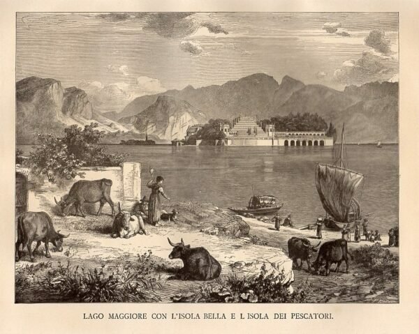 LAGO MAGGIORE - ISOLA BELLA e Lago Maggiore. con l'Isola Bella e l'Isola dei Pescatori; bellissimo paesaggio con armenti in primo piano.