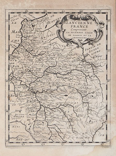 Carta geografica tratta dal "Theatre geographique de l'Europe, contenant la division de ses royaumes et provinces. Le tout suivant la table contenue au fueillet suivant par le P. Ph. Briet, de la Compagnie de Iesus", pubblicato a Parigi "chez Pierre Mariette, rue Saint Iacques, à l'Esperance M.DC.LIII". Si tratta di una rara opera del padre gesuita, nella quale si evidenzia il contributo delle missioni gesuitiche alle scoperte geografiche.Incisione in rame, in buono stato di conservazione.Biblografia: Mireille Pastoureau, "Les Atlas français (XVIe-XVIIe siècles) : Répertoire bibliographique et étude", Paris, 1984. Map taken from "Theatre Geographique de l'Europe.", a very rare work by the jesuit priest Briet, published in Paris by Pierre Mariette. Copperplate with original outline colour, in very good conditions. Cfr.