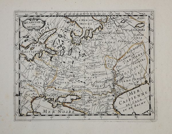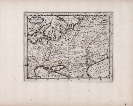 Carta geografica tratta dal "Theatre geographique de l'Europe, contenant la division de ses royaumes et provinces. Le tout suivant la table contenue au fueillet suivant par le P. Ph. Briet, de la Compagnie de Iesus", pubblicato a Parigi "chez Pierre Mariette, rue Saint Iacques, à l'Esperance M.DC.LIII". Si tratta di una rara opera del padre gesuita, nella quale si evidenzia il contributo delle missioni gesuitiche alle scoperte geografiche.Incisione in rame, in buono stato di conservazione.Biblografia: Mireille Pastoureau, "Les Atlas français (XVIe-XVIIe siècles) : Répertoire bibliographique et étude", Paris, 1984. Map taken from the Theatre Geographique de l’Europe. A rare work realized by the Jesuit priest Briet. Copperplate, contemporary outline colour, in excellent condition. Cfr.