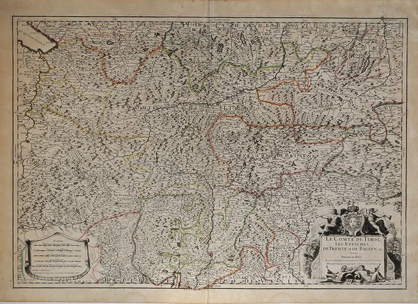 Bella carta geografica del Tirolo, tratta da "Atlas noveau contenant toutes le parties du Monde…", pubblicato ad Amsterdam nel 1696 e nel 1708. La carta è molto accurata, ma non aggiornata rispetto ai modelli a cui l'autore ha attinto: Blaeu del 1662 e, in particolare per il Trentino, Magini del 1620. Incisione in rame, coloritura coeva dei contorni, in ottimo stato di conservazione. Bella carta geografica del Tirolo, tratta da "Atlas noveau contenant toutes le parties du Monde…", pubblicato ad Amsterdam nel 1696 e nel 1708. La carta è molto accurata, ma non aggiornata rispetto ai modelli a cui l'autore ha attinto: Blaeu del 1662 e, in particolare per il Trentino, Magini del 1620. Incisione in rame, coloritura coeva dei contorni, in ottimo stato di conservazione. Cfr. G. Tomasi, Il Territorio Trentino-Tirolese nell'antica cartografia, sc. 66