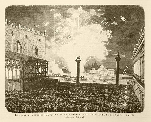 Le feste di Venezia.- Illuminazione e fuochi nella piazzetta di S. Marco, 5 aprile