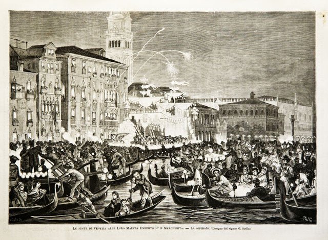 Le feste di Venezia alle Loro Maestà Umberto I° e Margherita.- La serenata