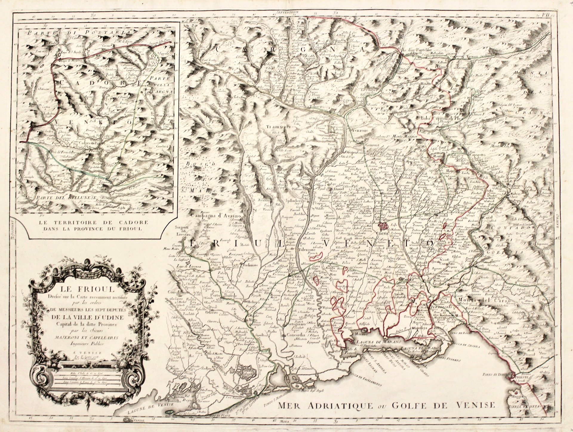 Le Frioul dressé sur la carte recemment rectifiée par les ordres de Messieurs les sept Deputés de la Ville d'Udine…par les Sieurs Majeroni et Capellaris