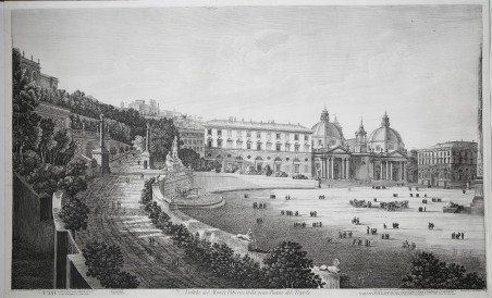 Veduta tratta da ' Voyage pittoresque en Italie. Partie Méridionale et en Sicile. ' Illustrations de MM. Rouargues Fréres. ' Paris, Morizot, s.a. Imprimerie Gratiot ' di Paul de Musset. Si tratta di una deliziosa e dotta guida attraverso le città ed i borghi del Centro Sud d'Italia, che contiene 23 incisioni dei fratelli Rouargue. Il viaggio di Paul in Italia durò quasi un anno. Partito nel dicembre del 1842, tornò nell’autunno dell’anno successivo: a Marsiglia s’imbarcò sulla nave Pharamond che lo portò a Genova, dove soggiornò circa un mese. Da Genova, il bastimento toscano Leopoldo lo condusse a Napoli, dove si trattenne tre mesi, facendo diverse gite nella regione. L’8 aprile si imbarcò sulla nave Mongibello in direzione di Messina, per un giro della Sicilia di circa sei settimane. Tornato a Napoli, andò in diligenza per lo Stato Pontificio fino a Roma, dove rimase quaranta giorni. Poi fu la volta di Firenze, Bologna, Ferrara, Padova, Venezia. Incantato dalla città così cara al fratello avrebbe desiderato trattenervisi a lungo ma, mancandogli il denaro, fu costretto a proseguire per Milano. Dopo una visita al lago di Como, prese la via del ritorno passando per il San Gottardo, Basilea e Strasburgo. Questo fu l’itinerario, secondo il resoconto che ne viene fatto nella prima versione, pubblicata nel 1845 col titolo ' Course en voiturin (Italie et Sicile). Negli anni 1855-1856 uscì un’altra versione molto estesa dello stesso viaggio: due grossi volumi di più di cinquecento pagine ciascuno, intitolati ' Voyage pittoresque en Italie. Partie septentrionale, e Voyage pittoresque en Italie (Partie méridionale) et en Sicile. Incisione in rame, in ottimo stato di conservazione. View taken from ' Voyage pittoresque en Italie. ' Partie Méridionale et en Sicile. ' Illustrations de MM. Rouargues Fréres. Paris, Morizot, s.a. Imprimerie Gratiot ' by Paul de Musset. This is a delightful and scholarly guide through the towns and villages of central southern Italy, containing 23 engravings by the Rouargue brothers. In the years 1855-1856 another very extensive version of the same voyage was published: two large volumes of more than five hundred pages each, entitled ' Voyage pittoresque en Italie. ' Partie septentrionale, and Voyage pittoresque en Italie (Partie méridionale) et en Sicile. Copperplate, in excellent condition. Cfr.