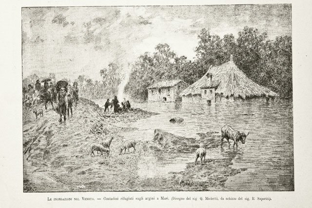 Le inondazioni nel Veneto / Contadini rifugiati sugli argini a Masi