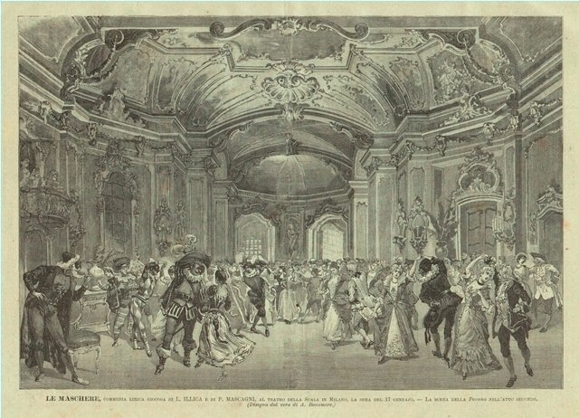Le Maschere, commedia lirica giocosa di L. Illica e P. Mascagni, al teatro della Scala in Milano, la sera del 17 gennajo - La scena della Pavana nell’atto secondo